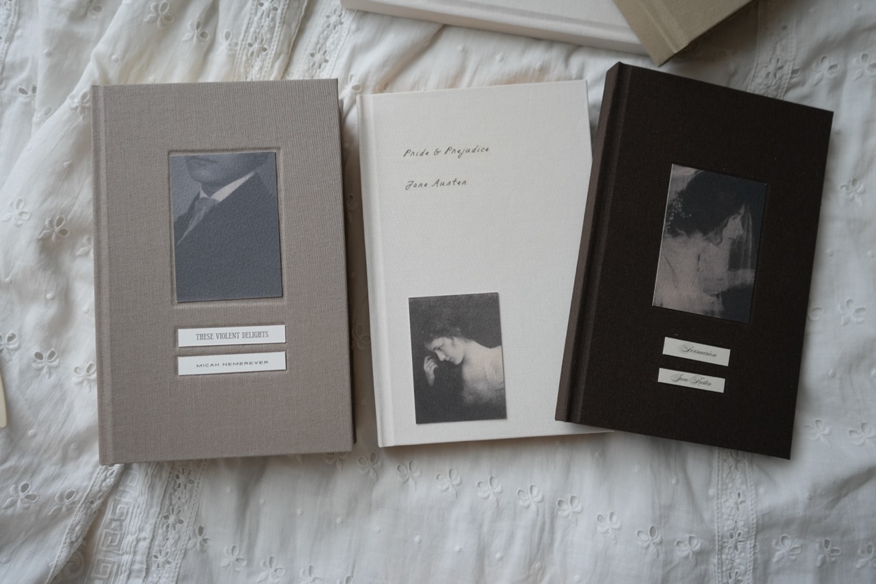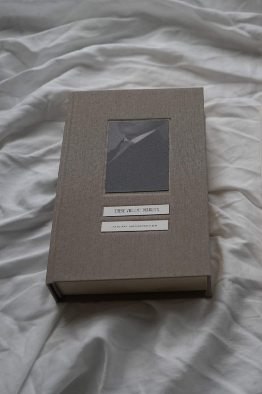 Upcycled paperback edition of These Violent Delights by Micah Nemerever — transformed into a coffee table book. This edition has been carefully upcycled and rebound by hand. The original paperback text block has been preserved and encased in a new, premium British linen cloth hardcover. Inside, the book features Fedrigoni endpapers, and the cover illustration is printed on textured, heavyweight art paper from a sustainable German mill, chosen for its tactile and archival qualities. If you would like to request a specific title or commission a fully custom book — from concept to design and hand-binding — feel free to get in touch. Please note: this copy is part of a sample sale. The price reflects minor imperfections that may occur during the manual bookbinding process. All source books were purchased second-hand in very good or perfect condition; slight natural yellowing or minimal signs of previous use may be present.